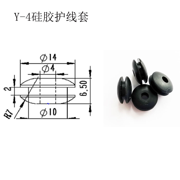 产品名称:Y-4硅胶护线圈双面护线套电源线出孔保护线内径4mm开孔10mm